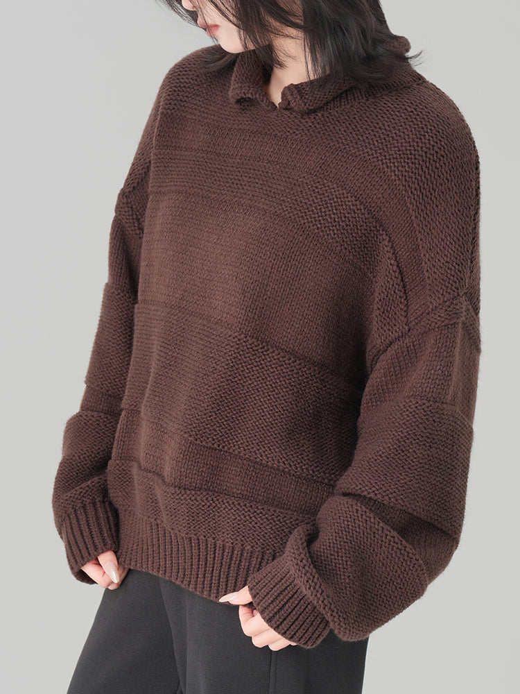 太め糸のリブ編みクルーネックセーター