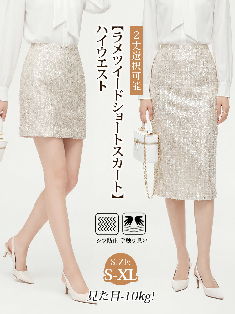 ハイウエストラメツイードショートスカート