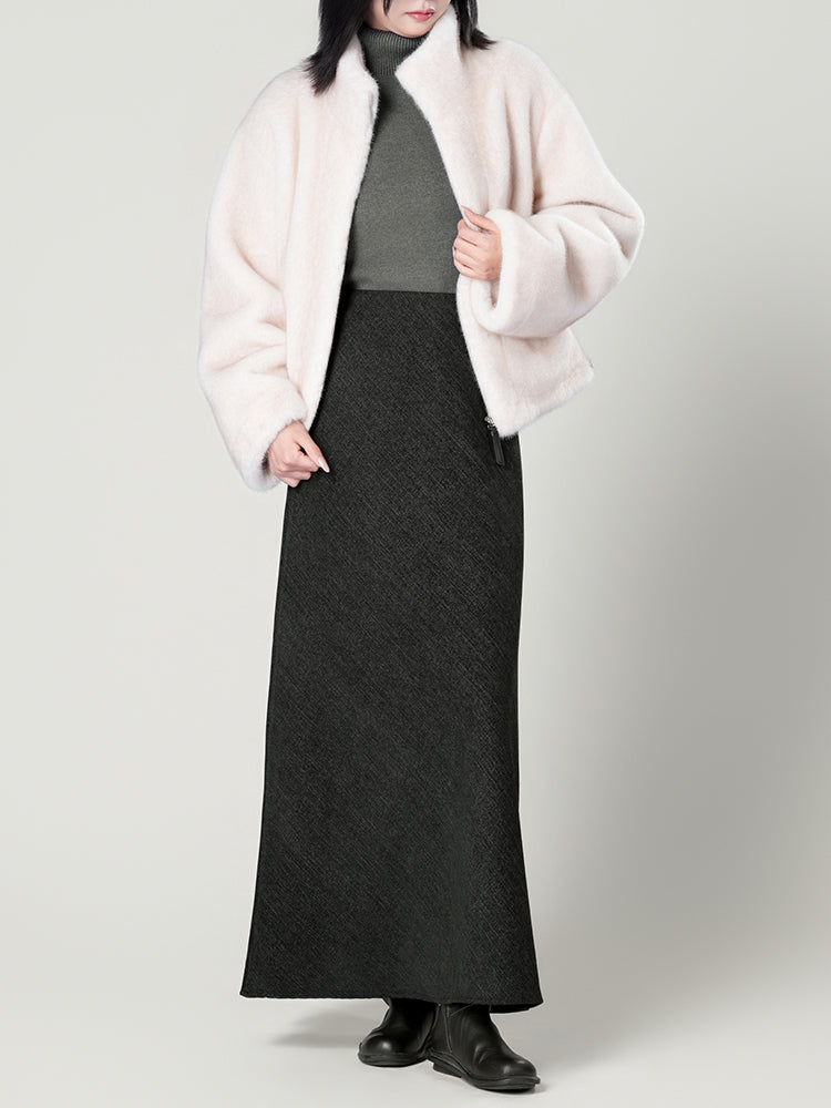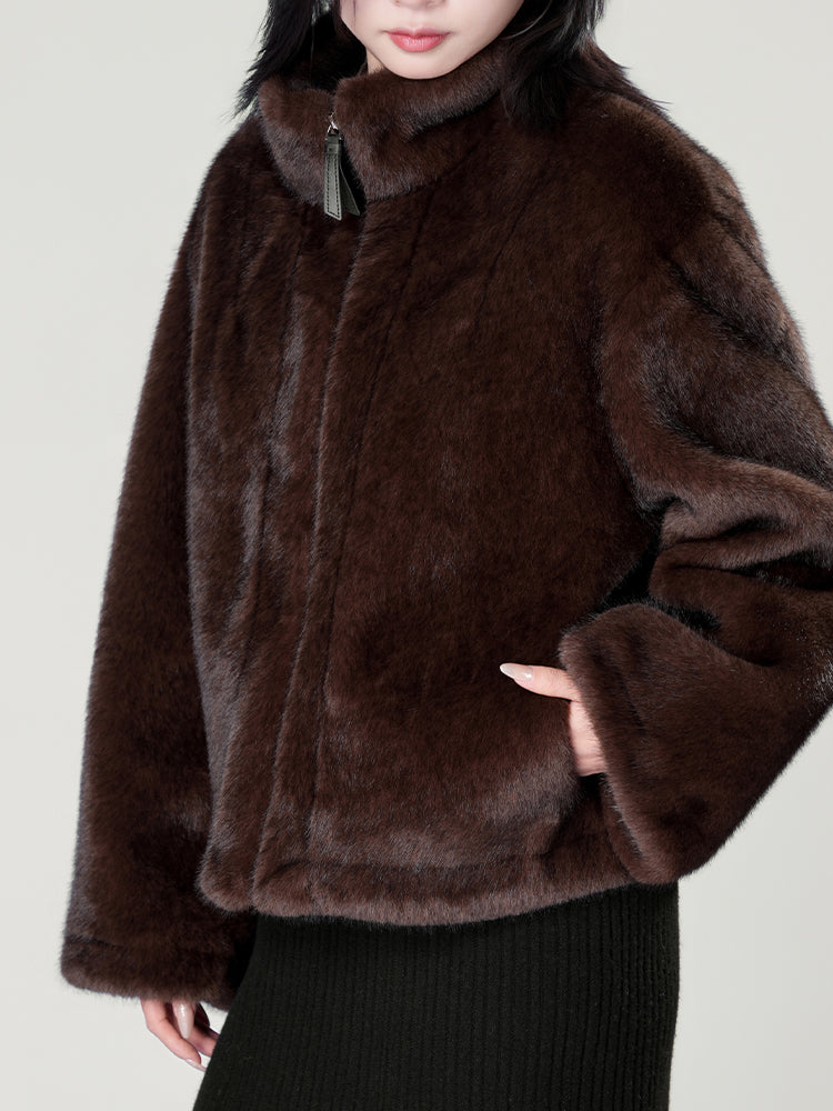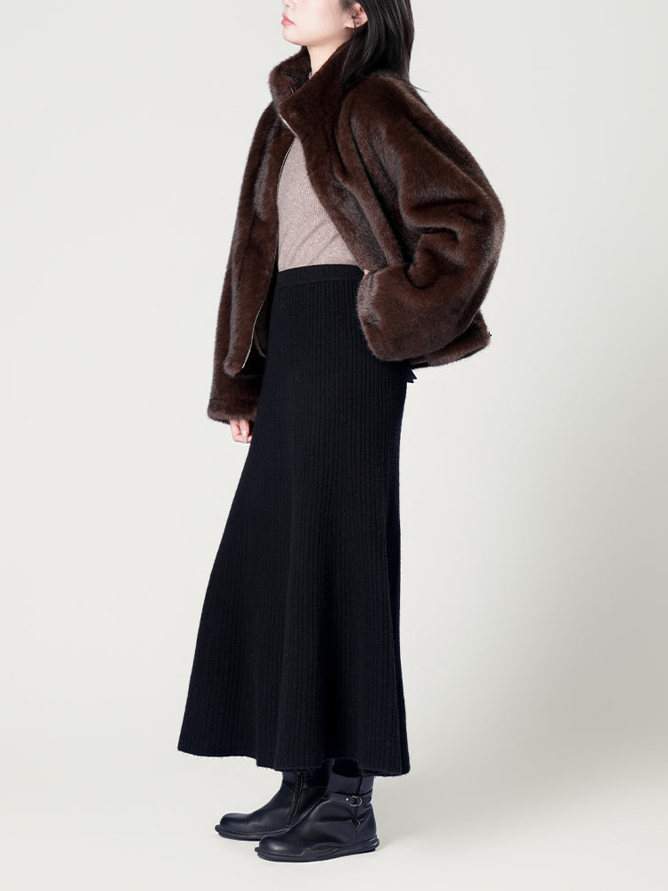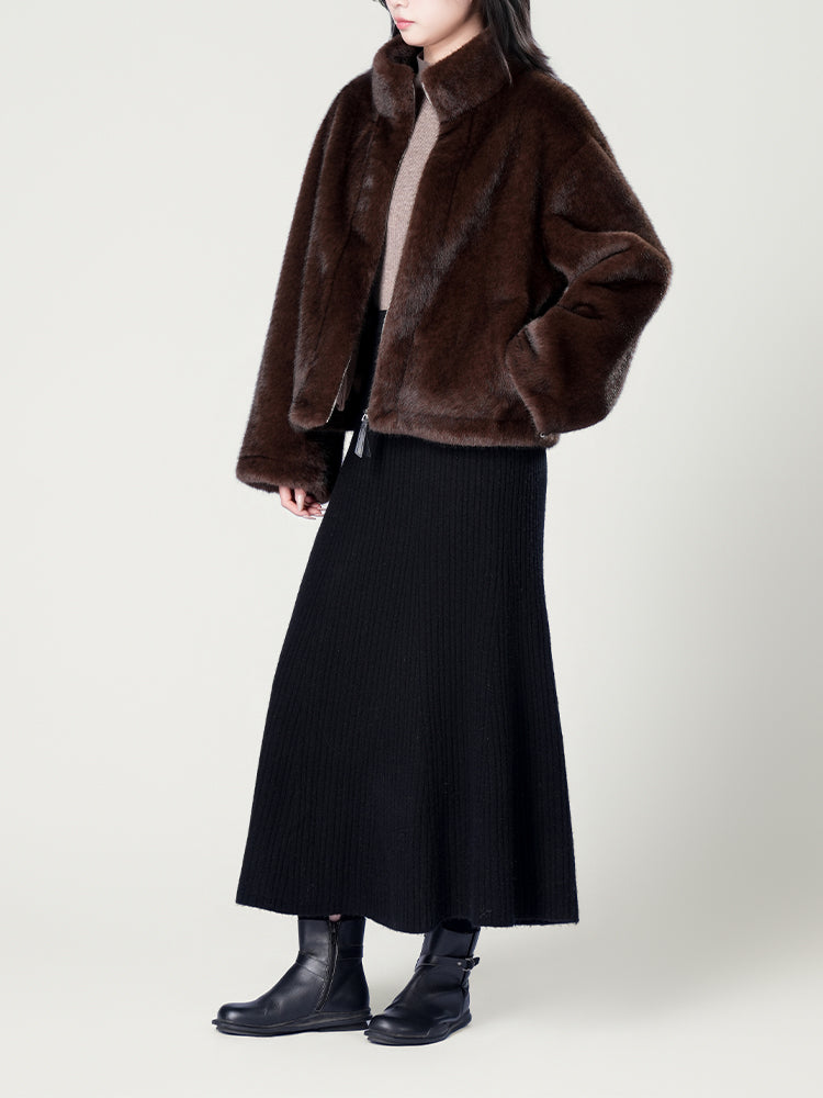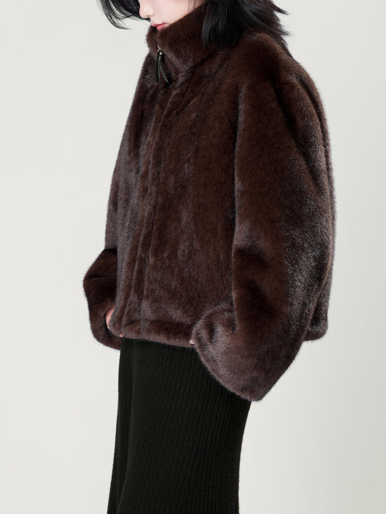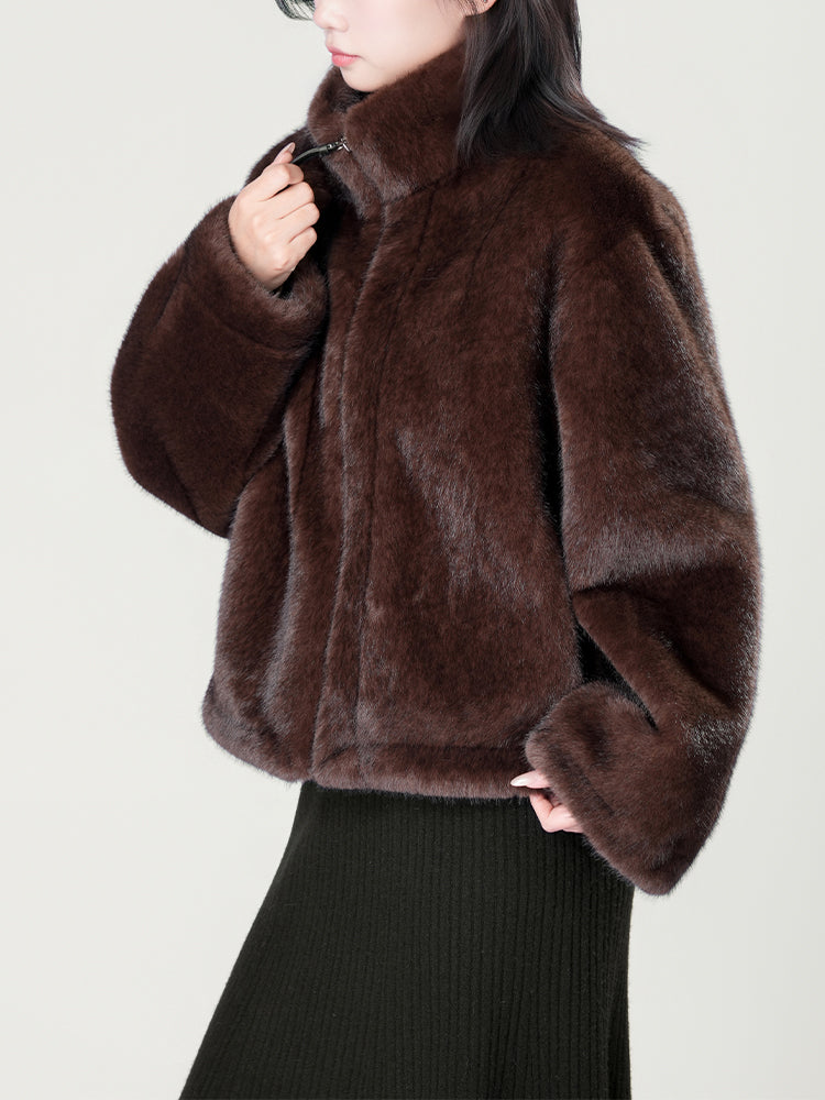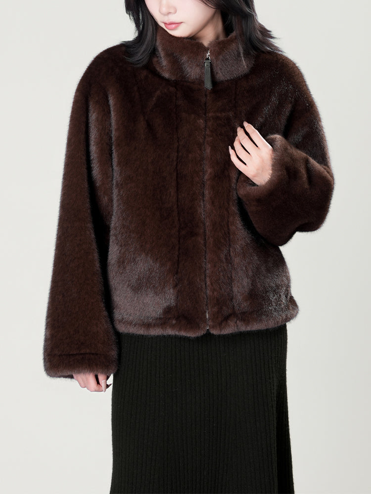 スタンドカラー防水ファーコート
