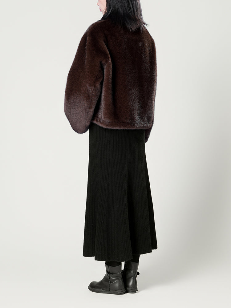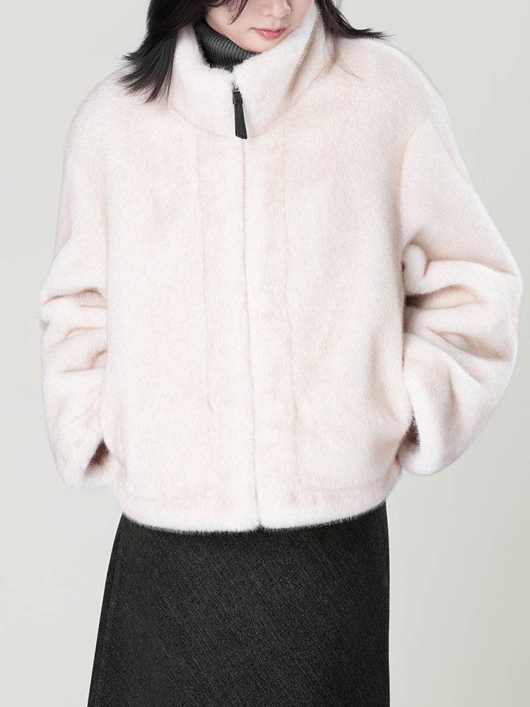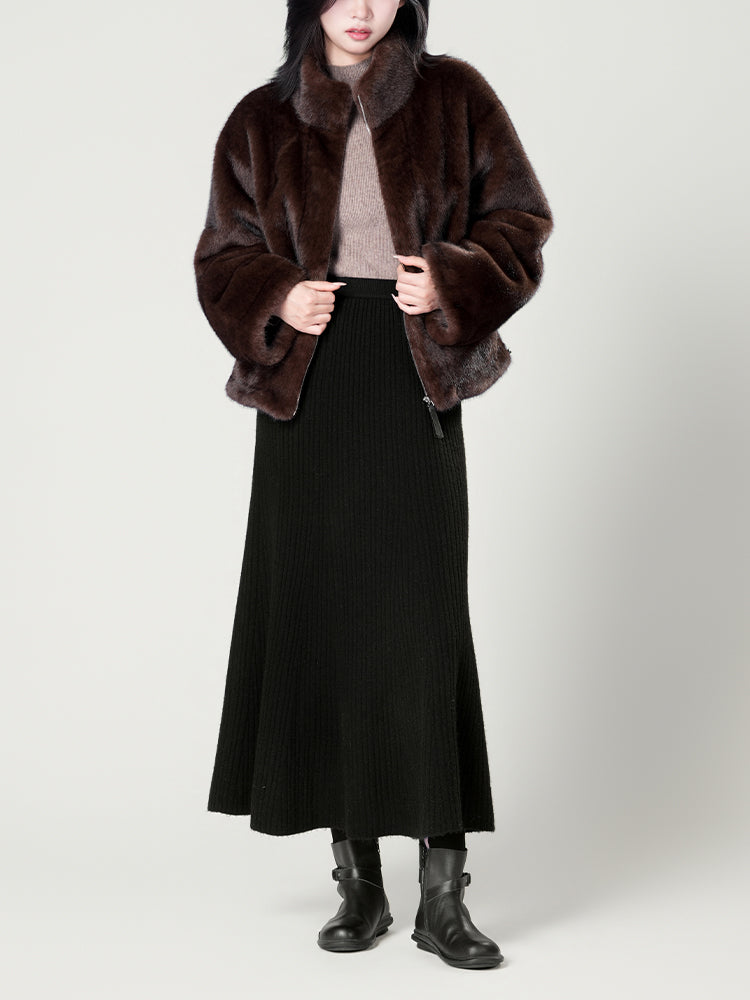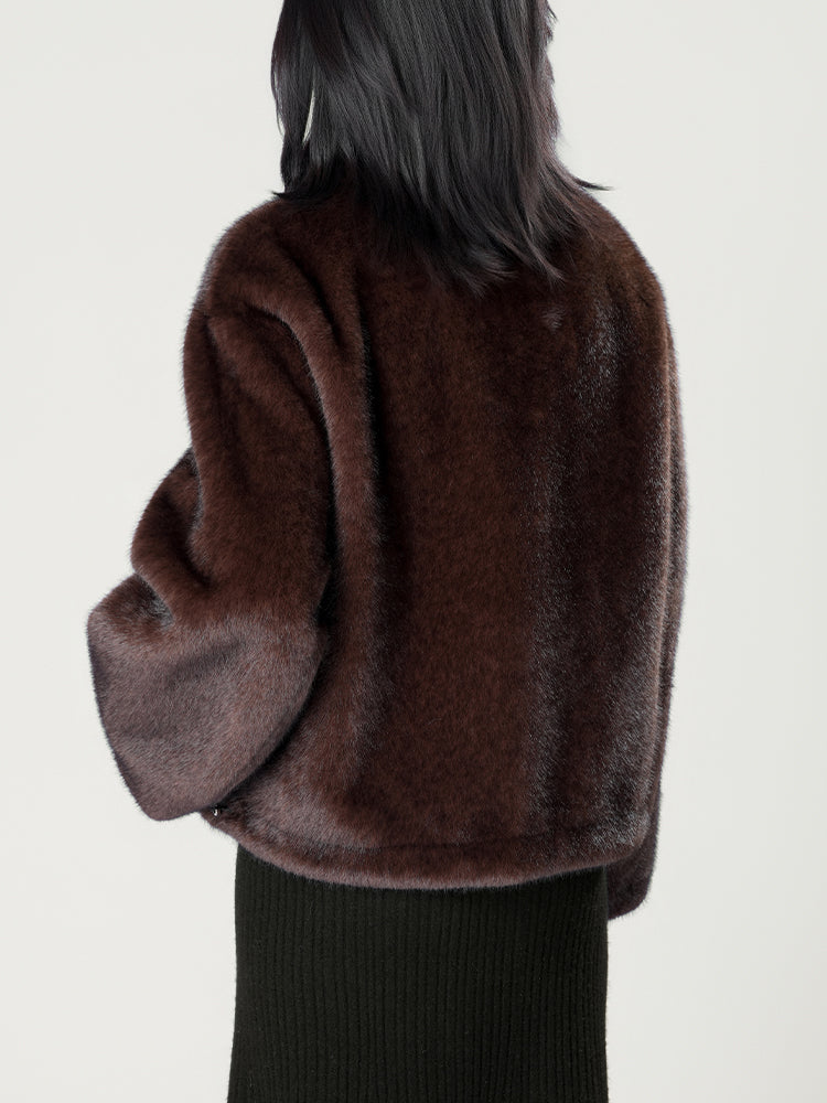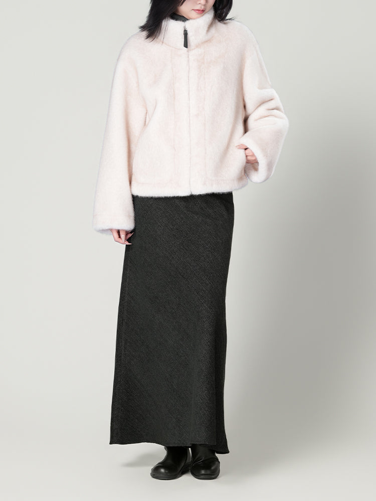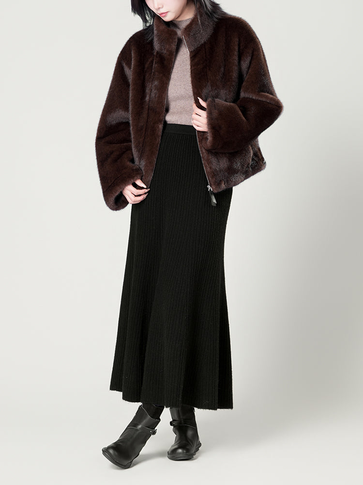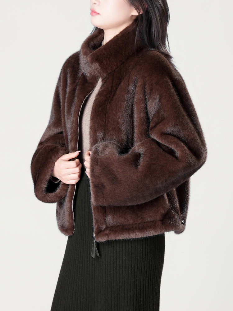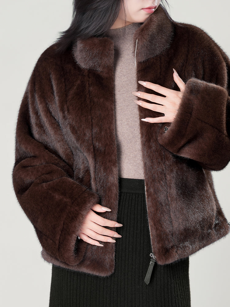 スタンドカラー防水ファーコート