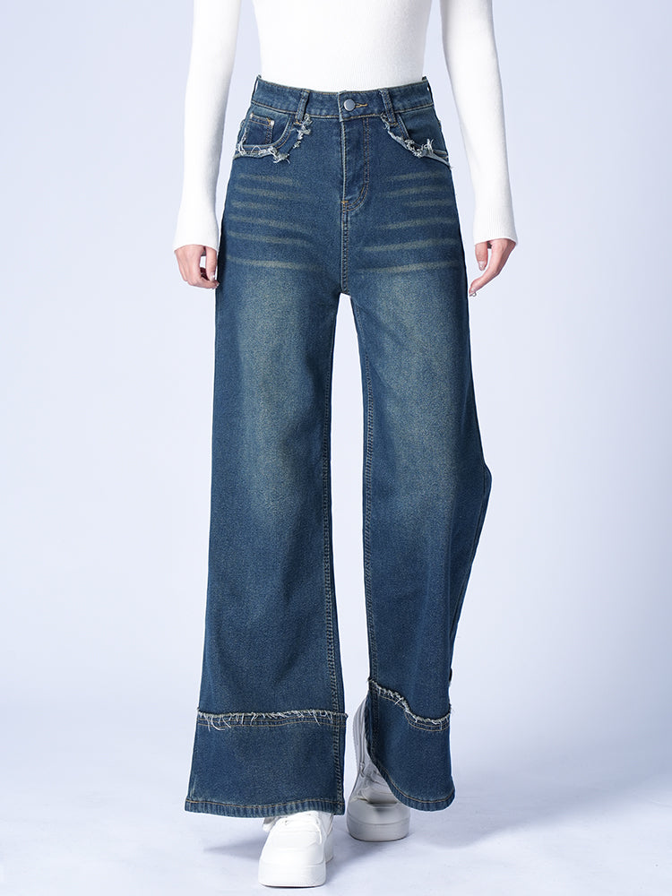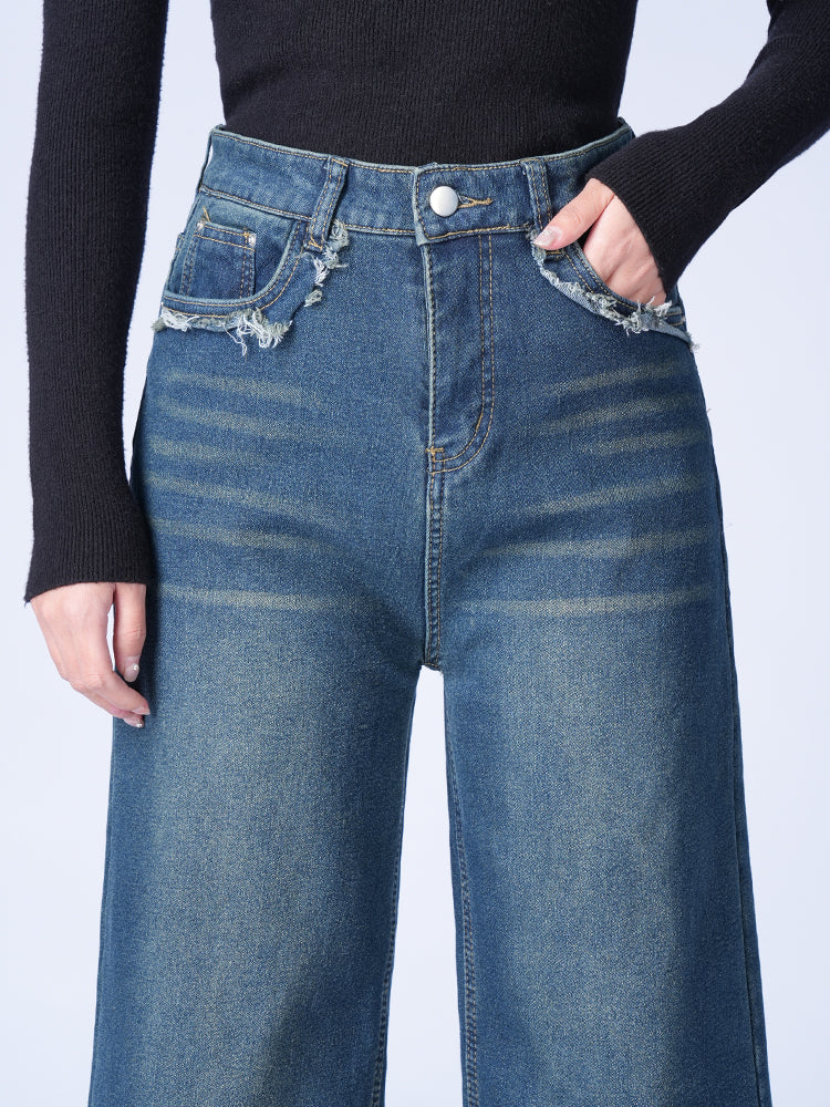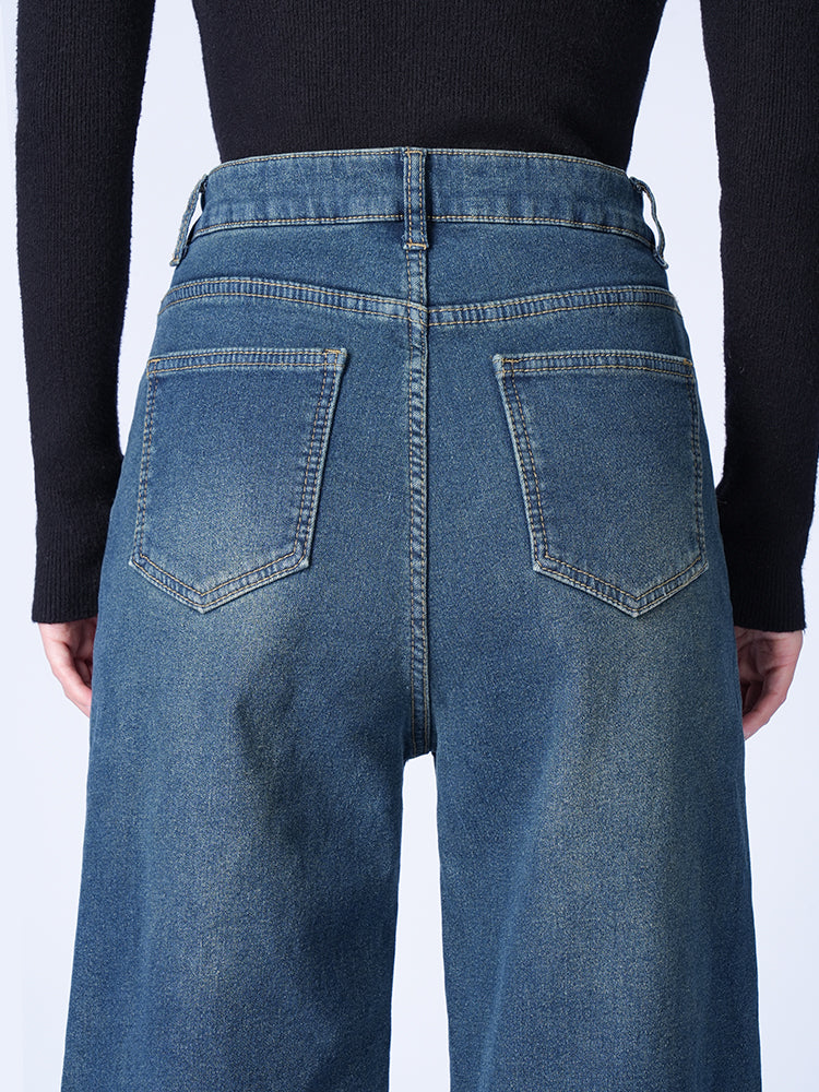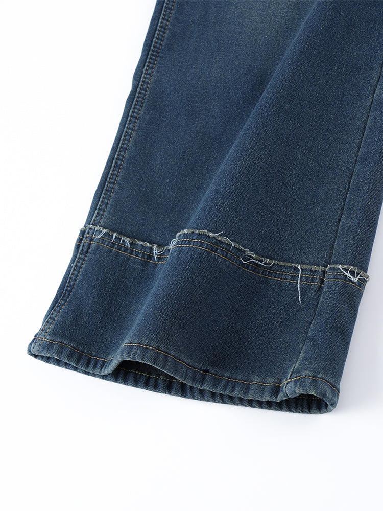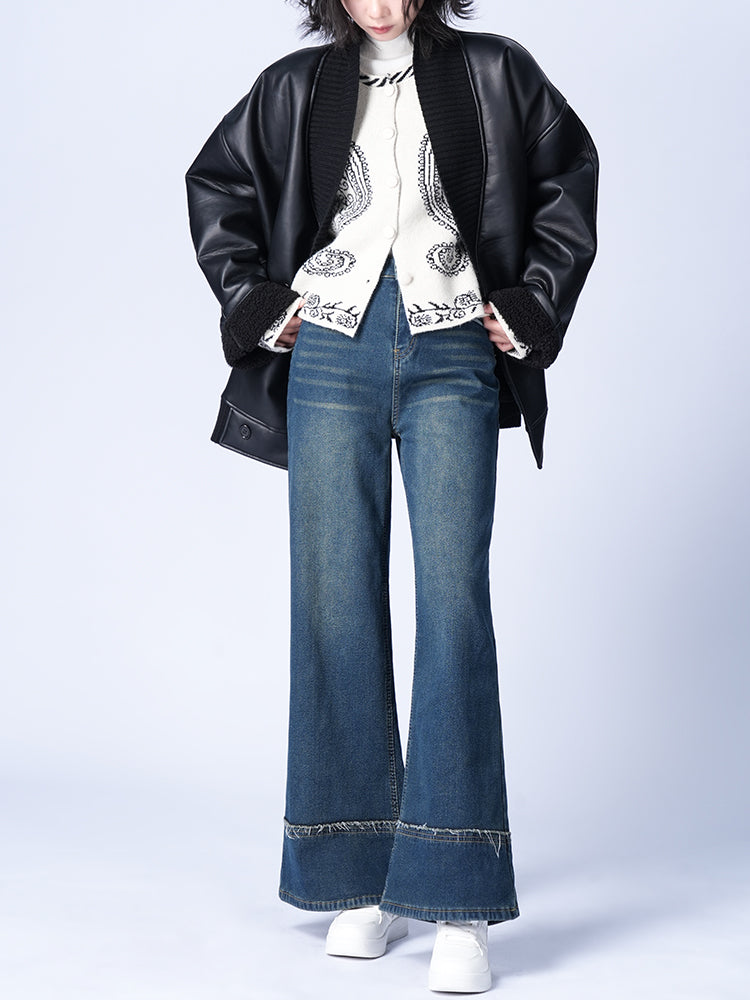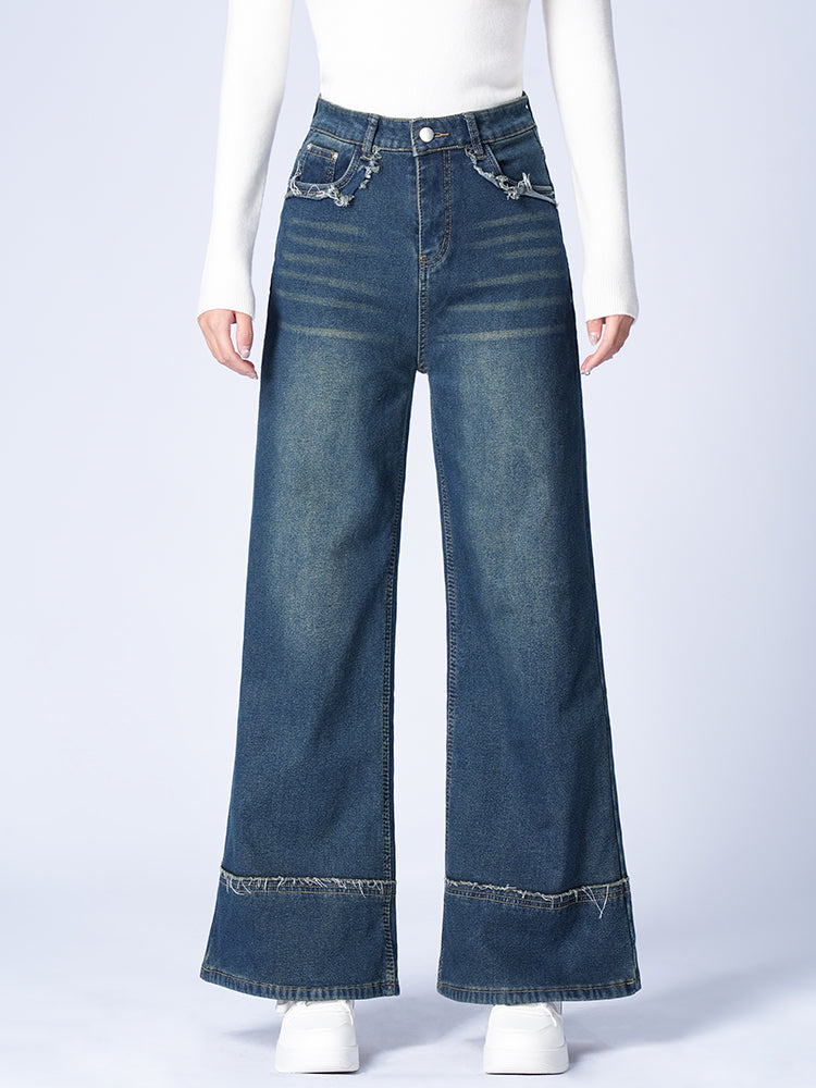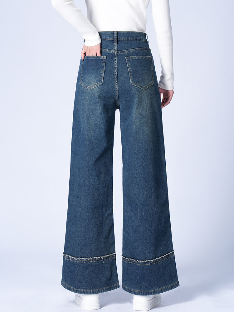 ハイウエスト裏起毛ワイドデニムパンツ