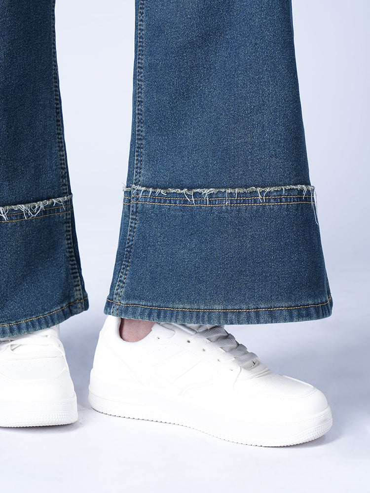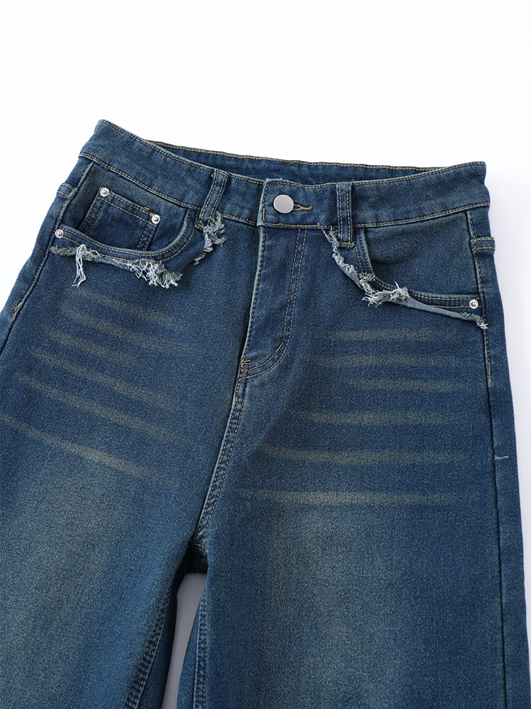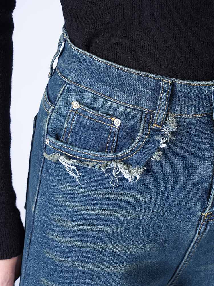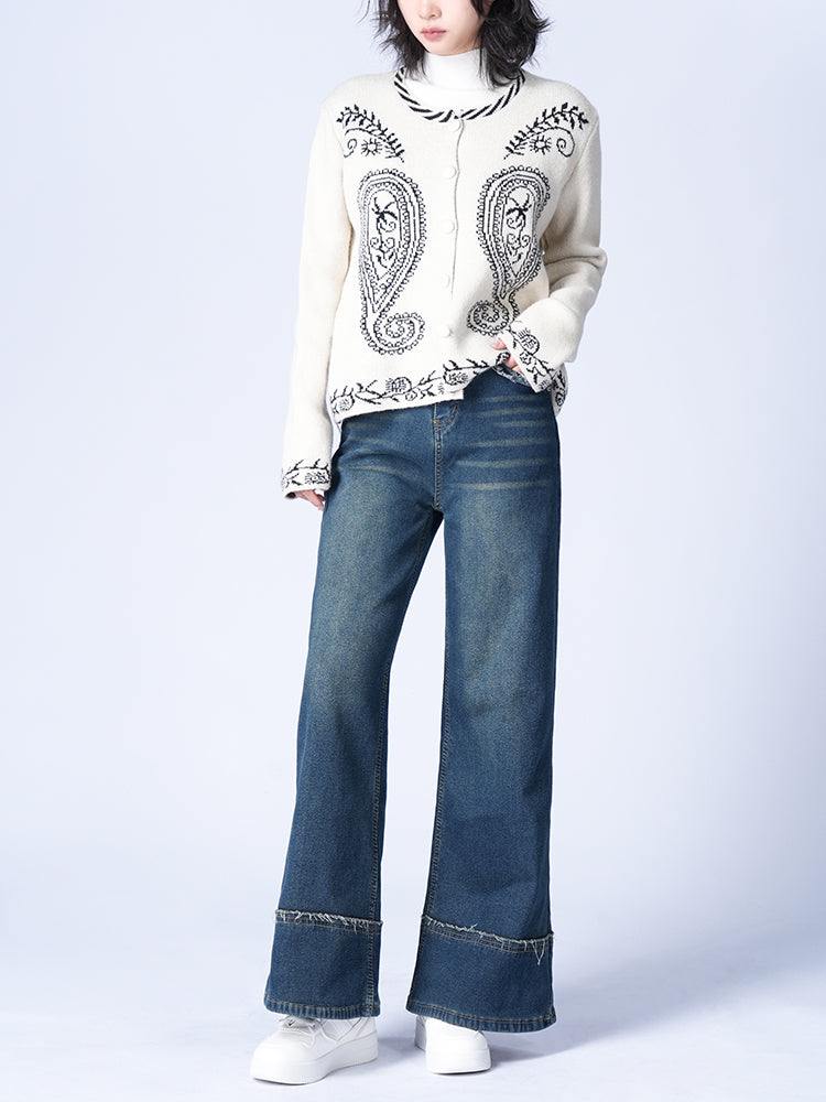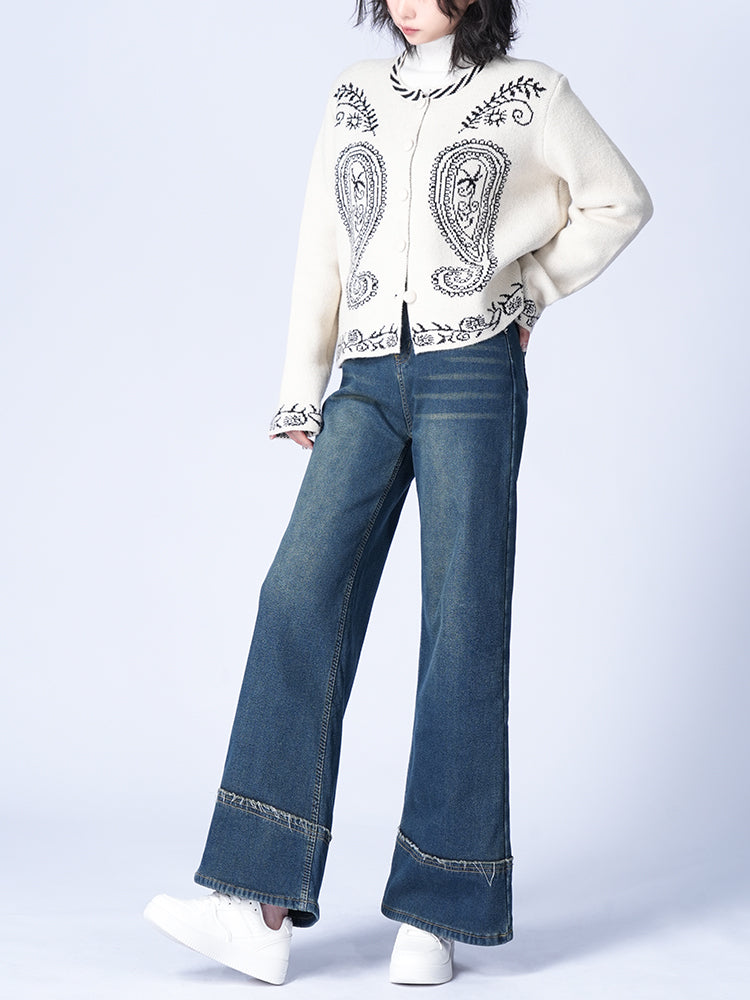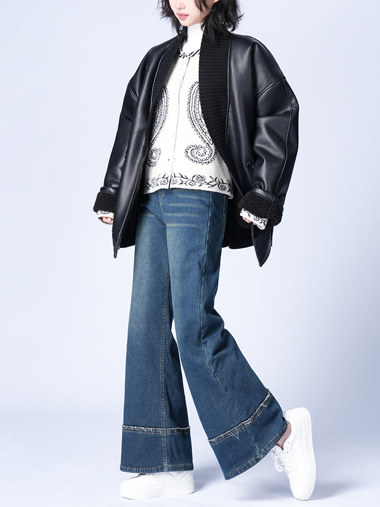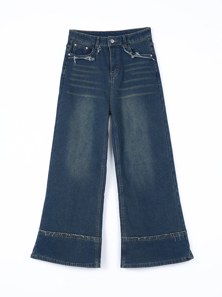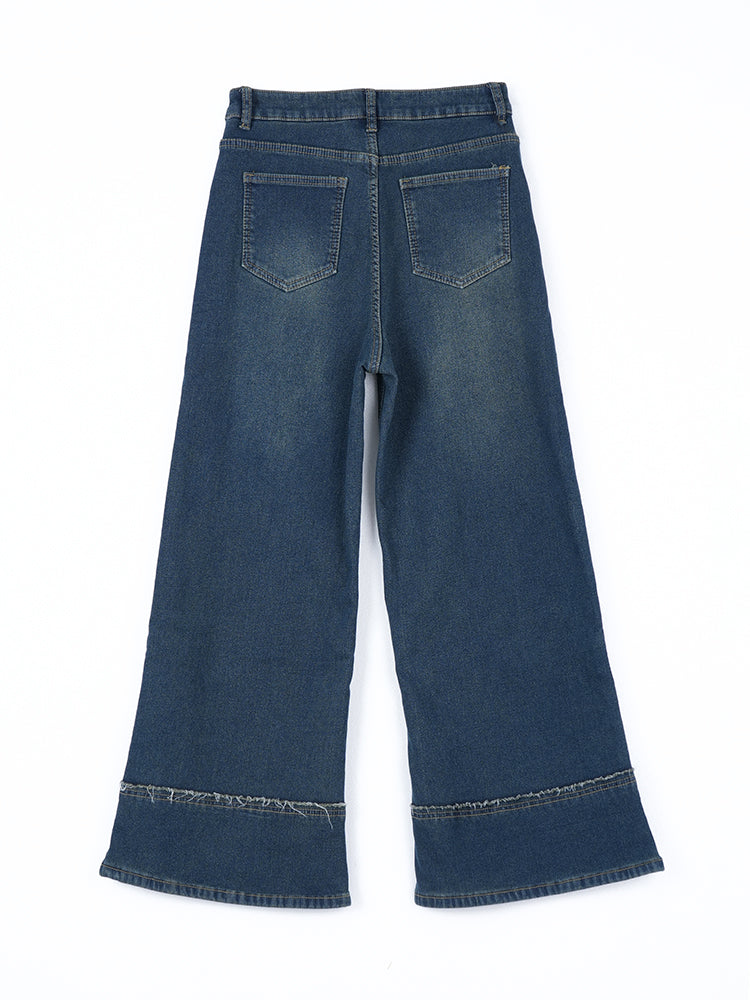 ハイウエスト裏起毛ワイドデニムパンツ