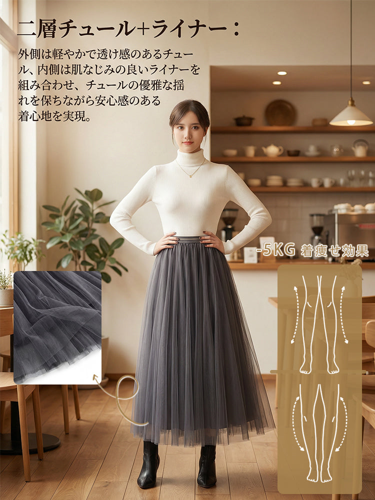 スリムチュールフレアスカート