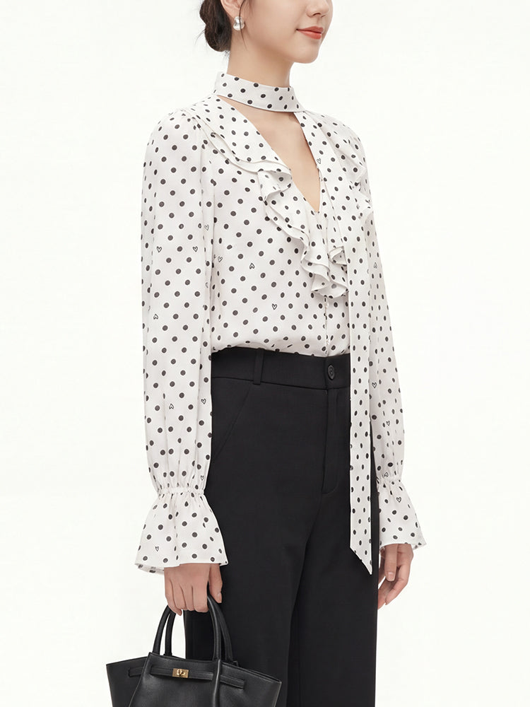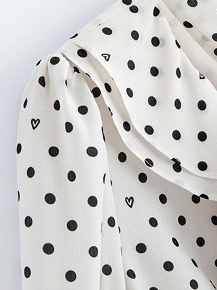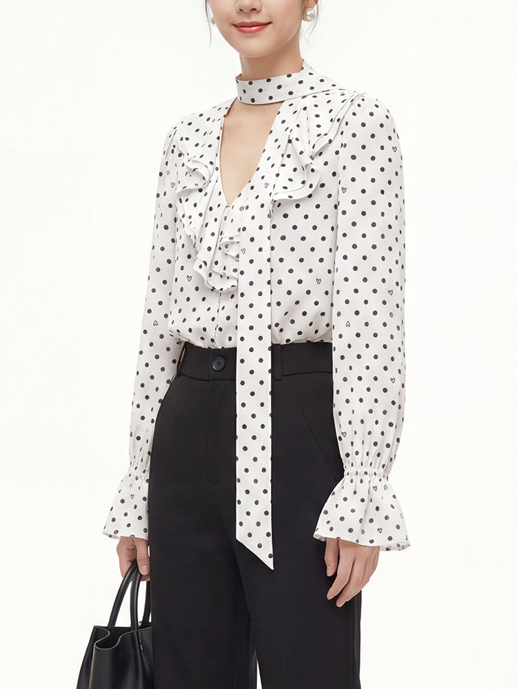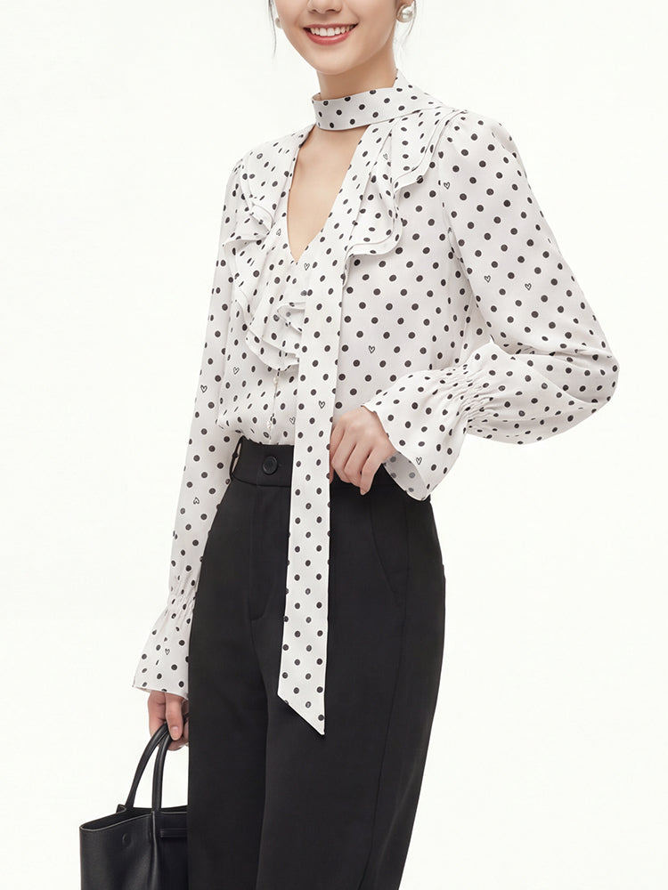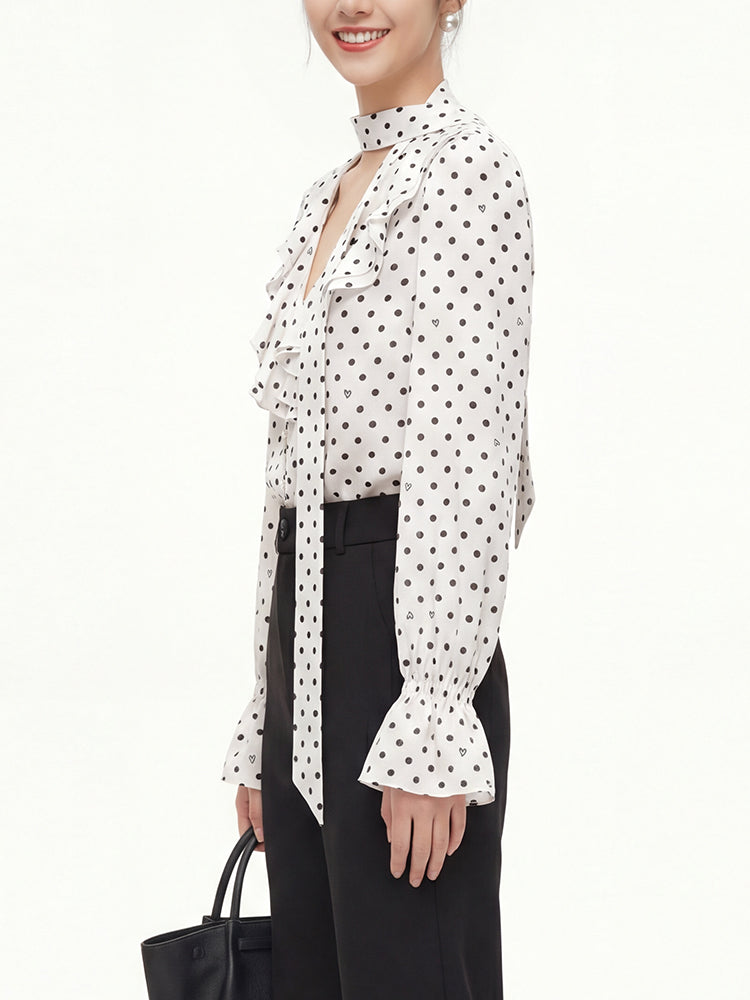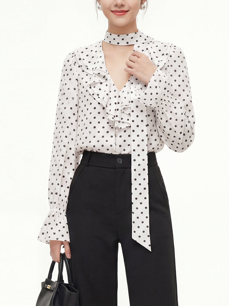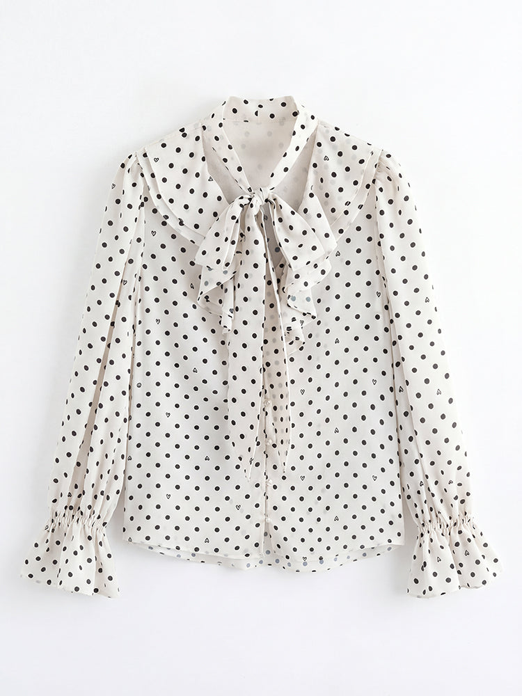 フレンチドットリボンブラウス