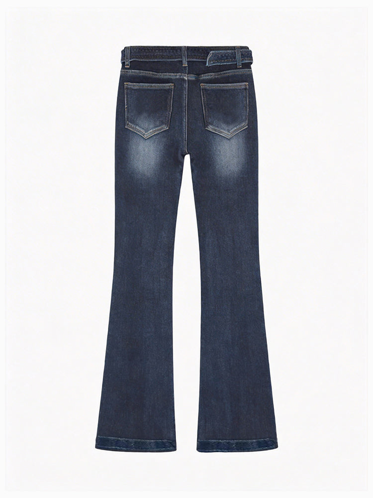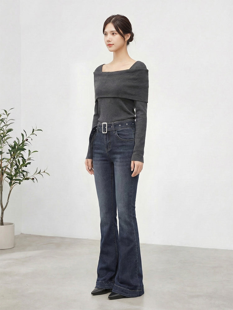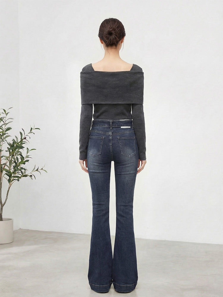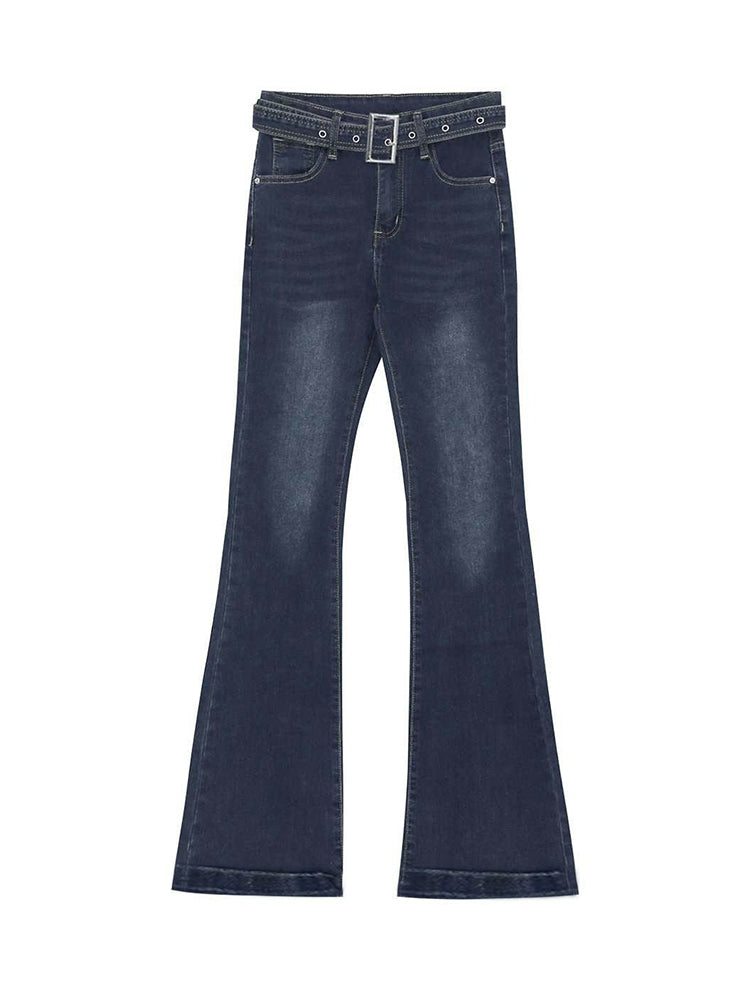 【ハイウエスト 微ラッパデニムパンツ】 ヒップアップ 脚長効果 スタイルアップ